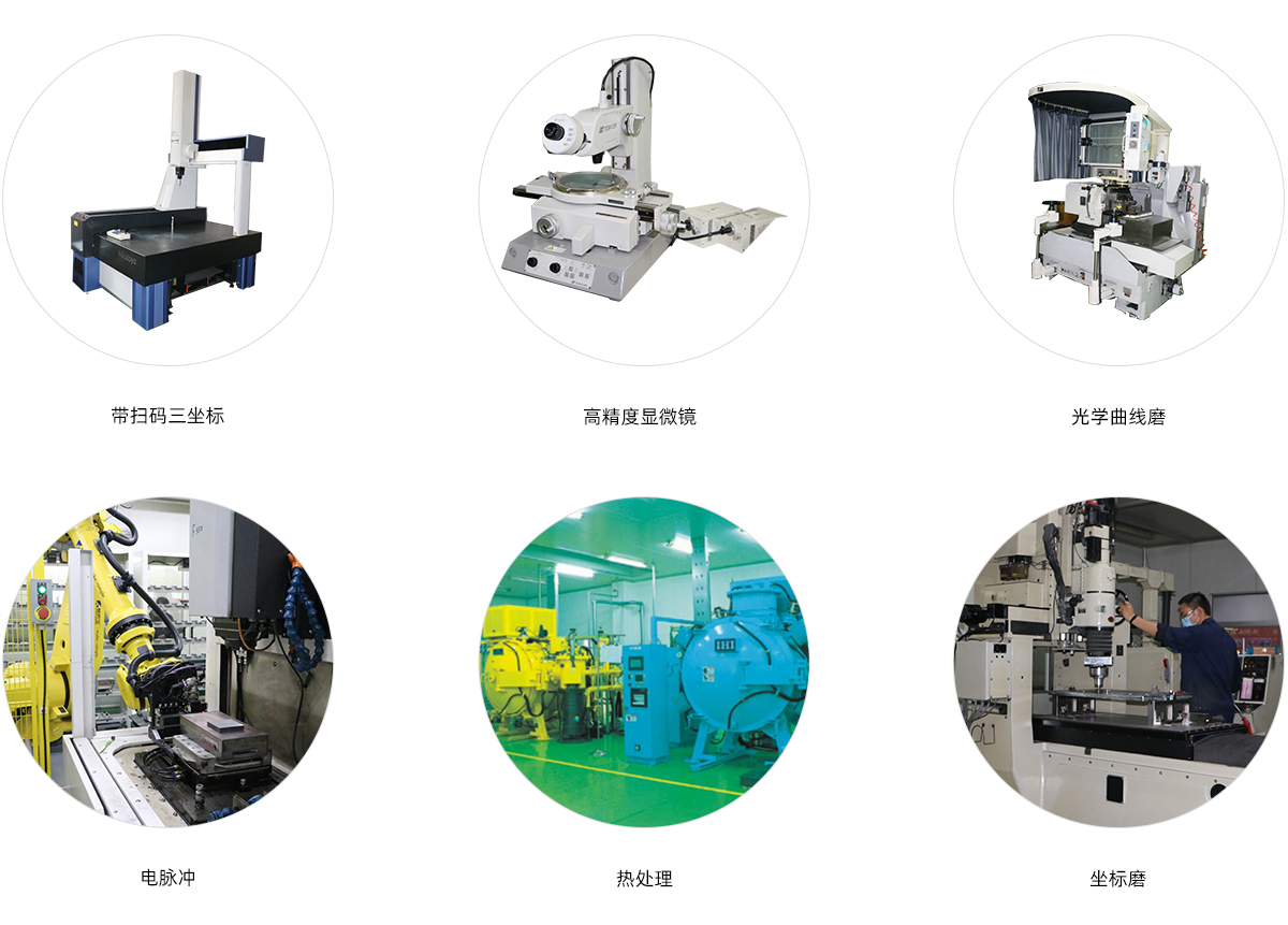公司擁有慢走絲30臺(tái)、加工中心20多臺(tái),電脈沖25臺(tái),光曲磨2臺(tái),數(shù)控成型磨1臺(tái),并建有1個(gè)熱處理工場(chǎng)和1個(gè)表面處理工廠,主要設(shè)備均為瓦西諾(WASINO)、夏米爾(CHARMILLES)、牧野( MAKINO )、沙迪克(SODICK)、摩爾(MOORE)等國(guó)際知名品牌。尖端、精密的加工設(shè)備,結(jié)合先進(jìn)的制造軟件,形成了強(qiáng)大 的制造能力。